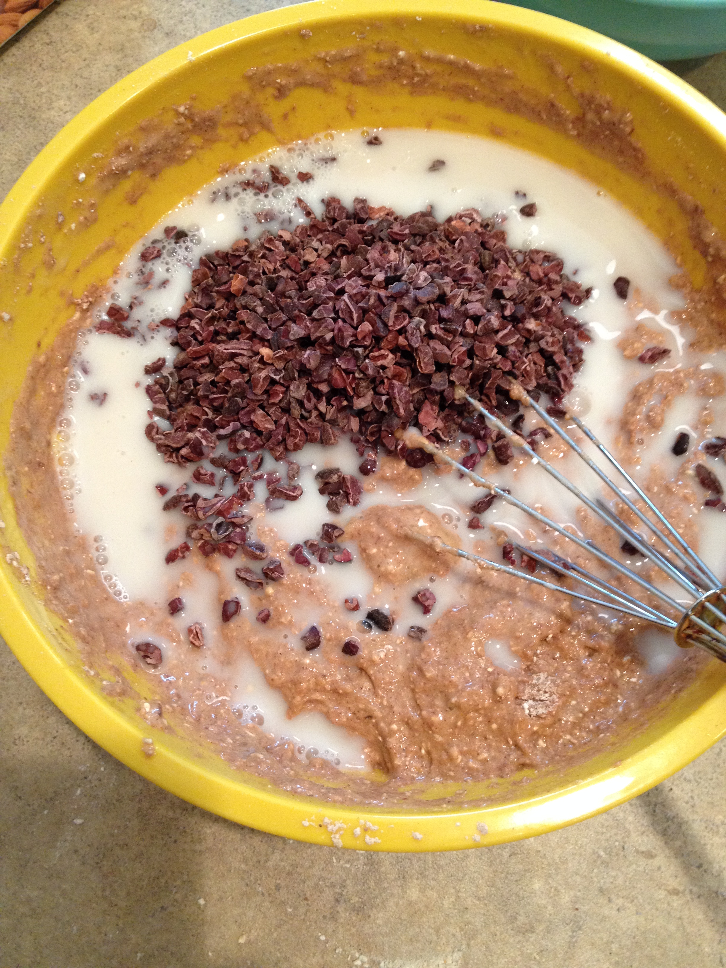 7. Add cacoa nibs and last 1/3 cup of mix and mix.