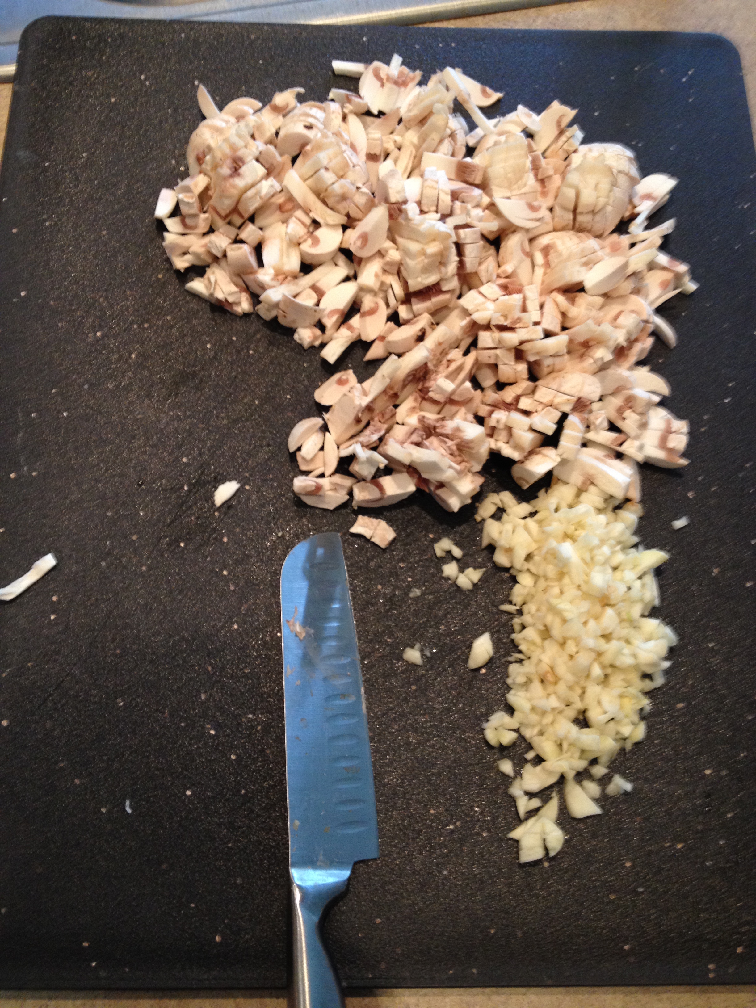 4. Mince garlic and chop mushrooms.