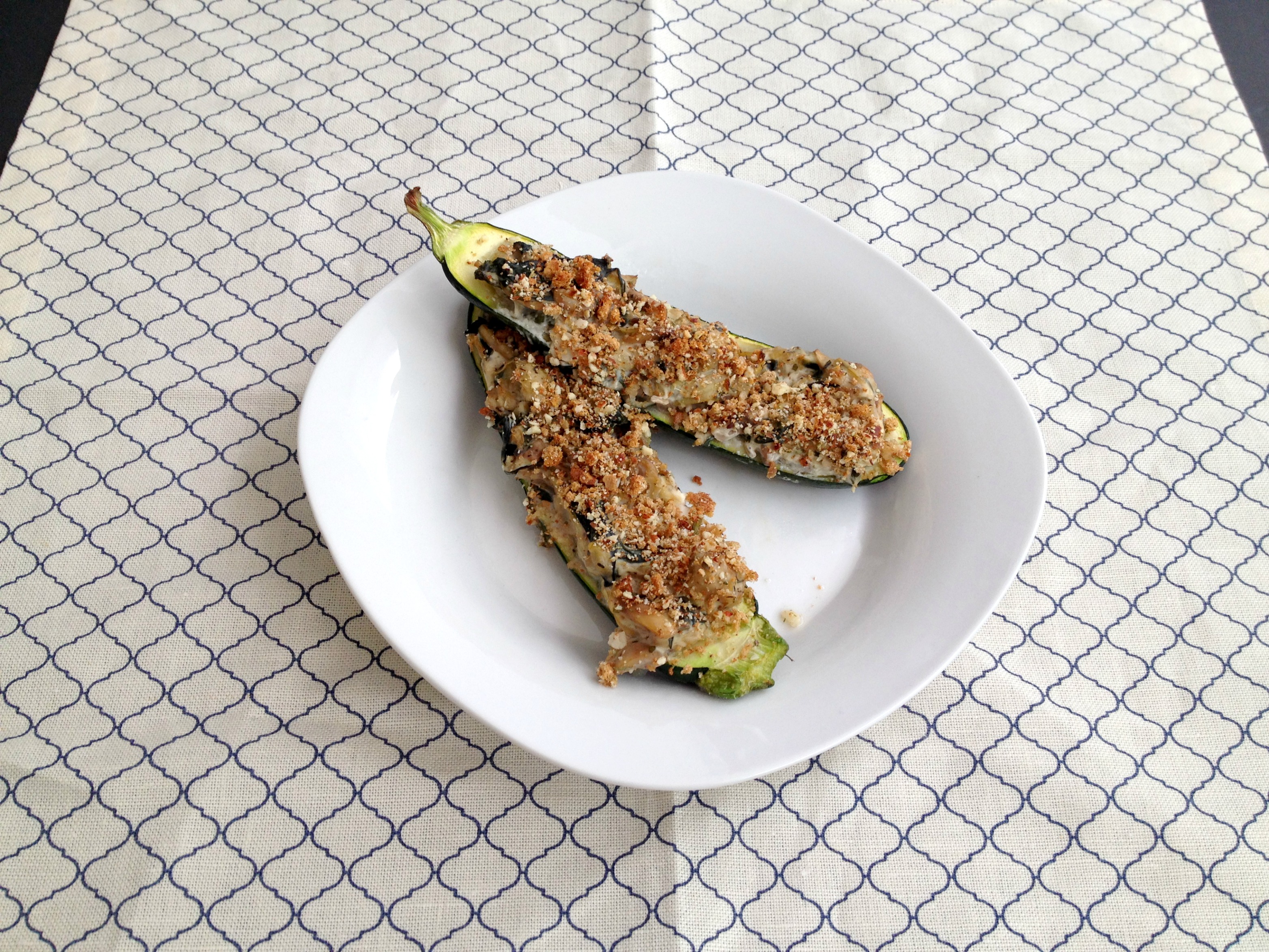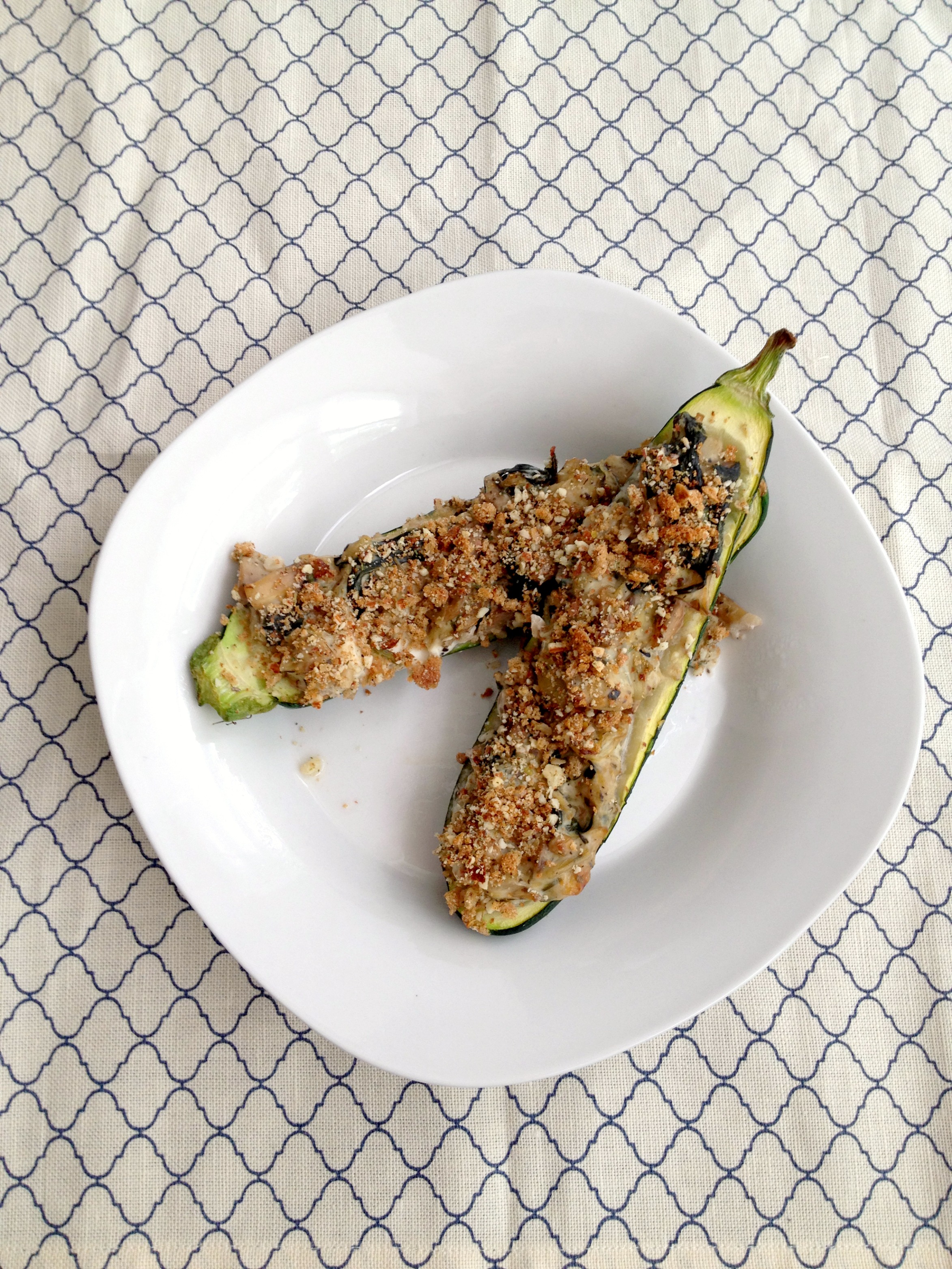 12. Fill each zucchini with mixture (will have about 1/2 cup leftover).
