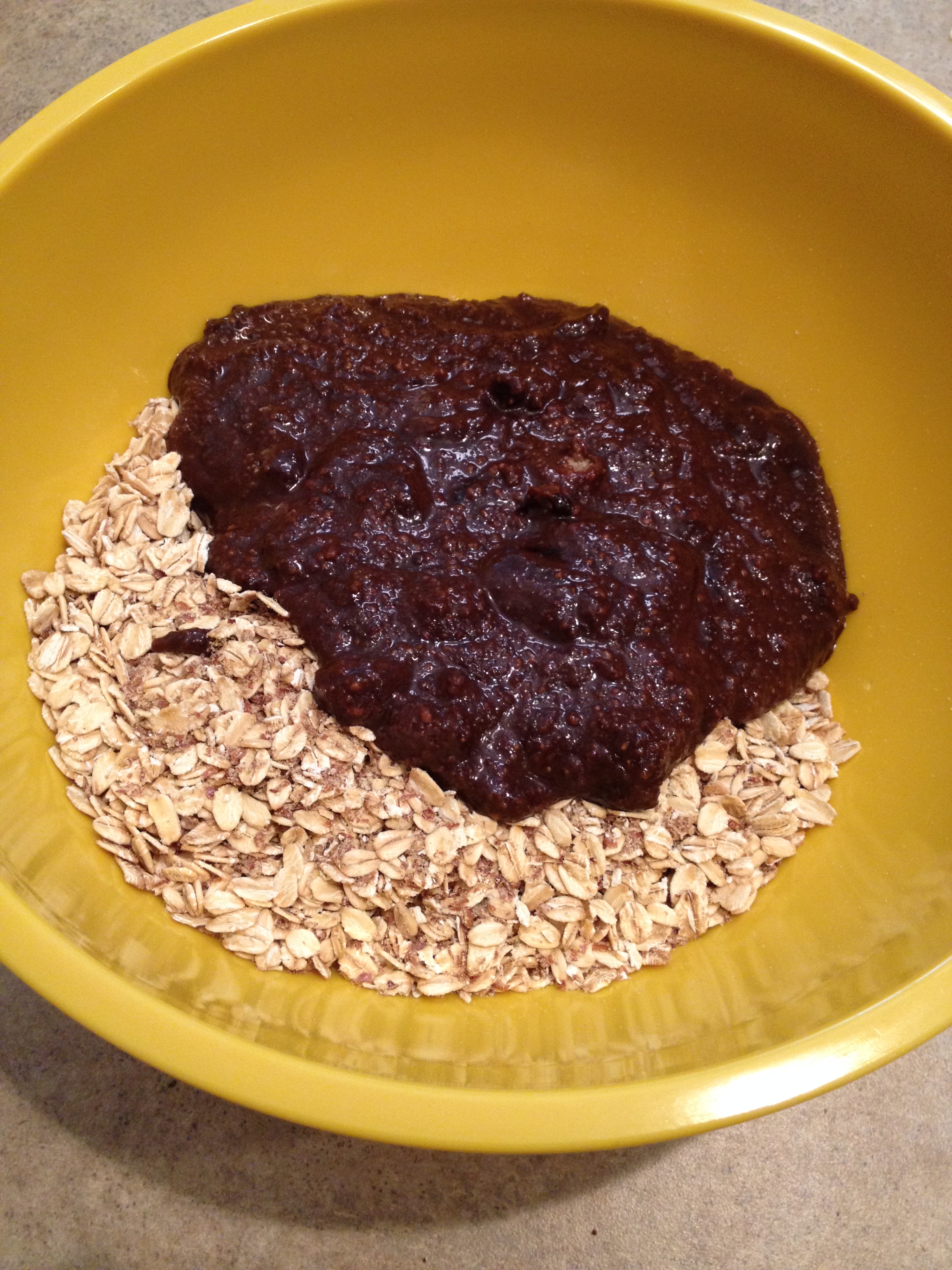 4. Dump oats and flax into a medium size mixing bowl and mix.