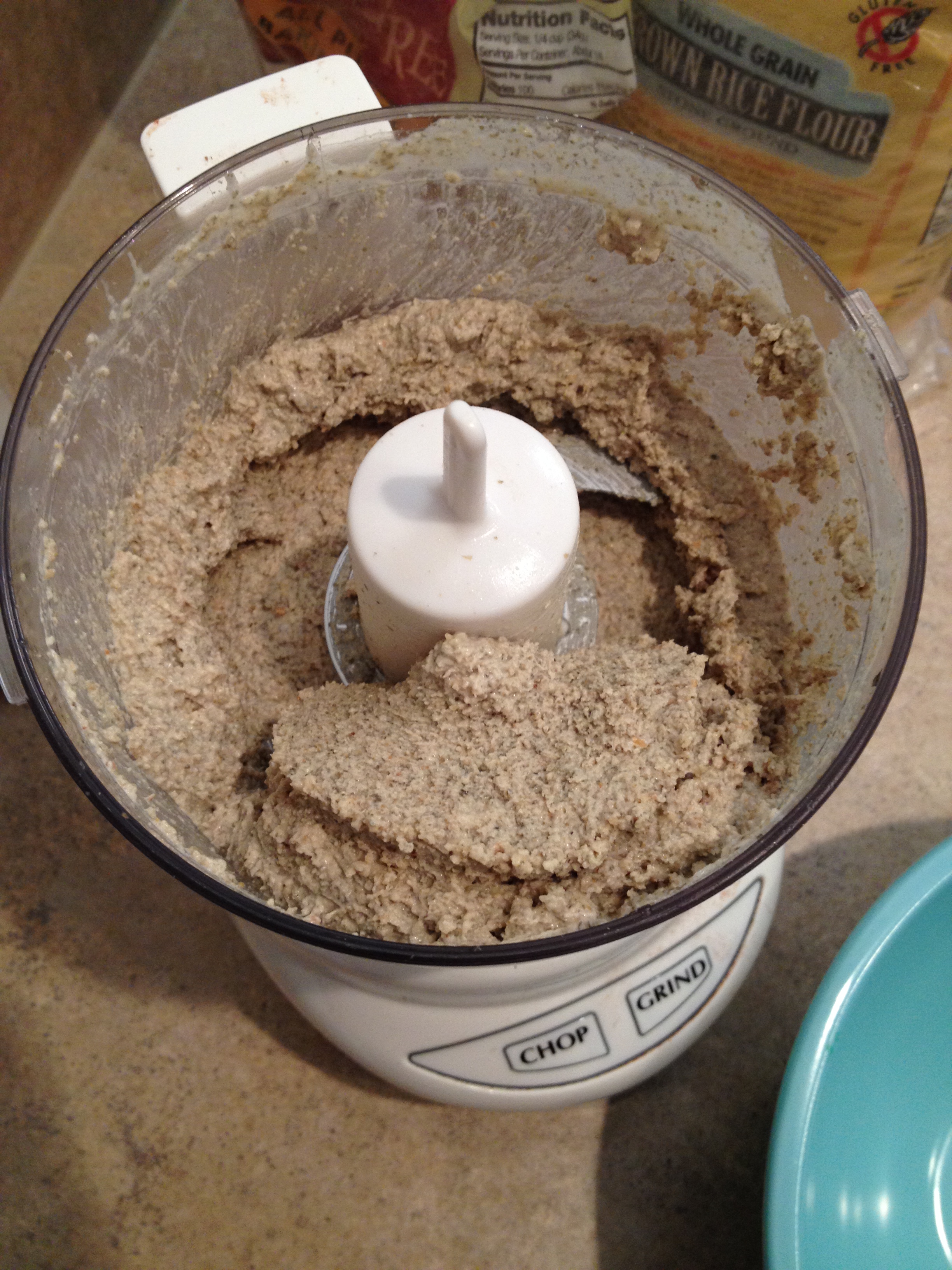 2. Dump pumpkin seeds into a small food processor and process until a round ball forms. Add water in one tablespoon increments to help process butter. Dump into a small mixing bowl.