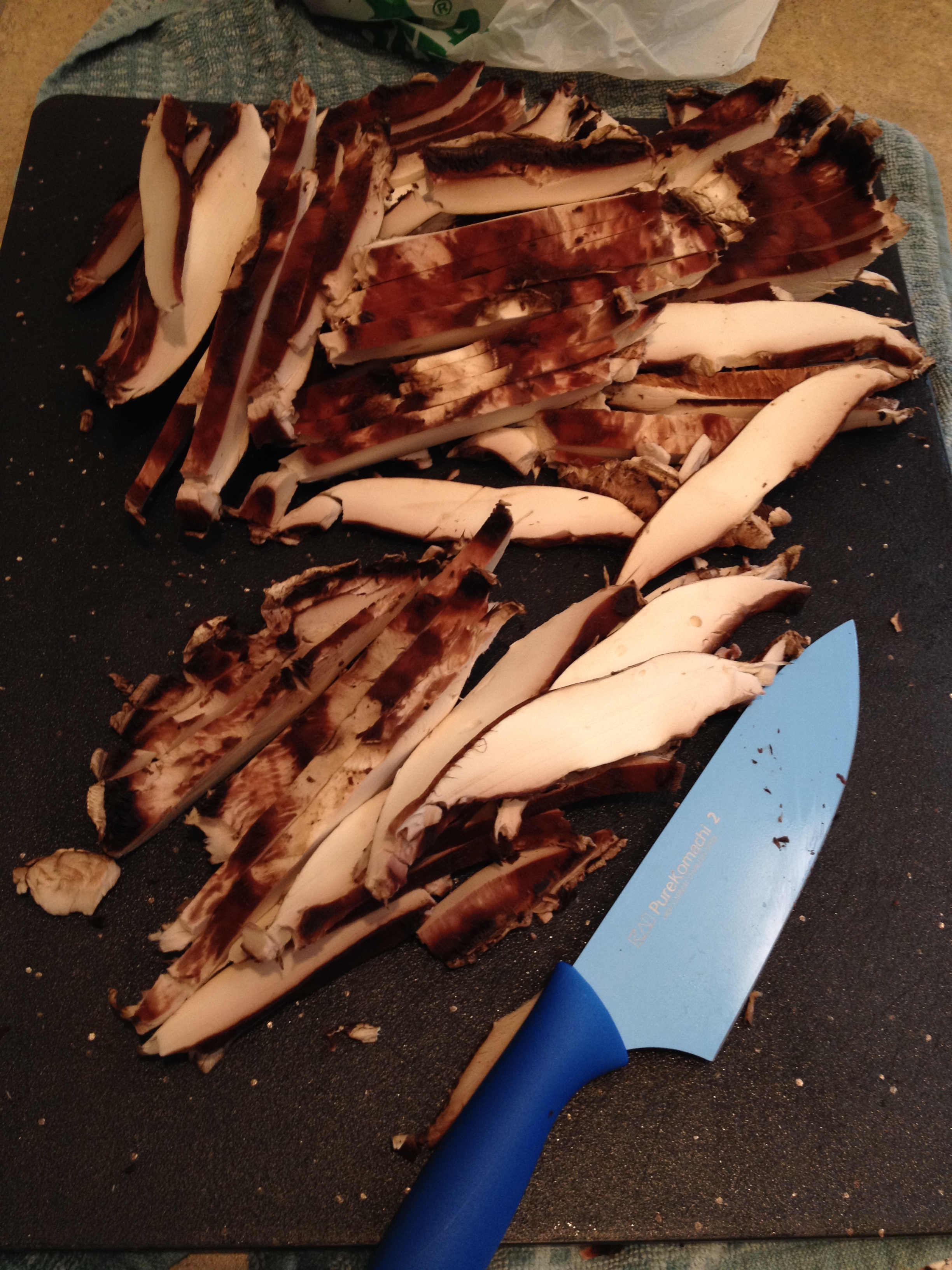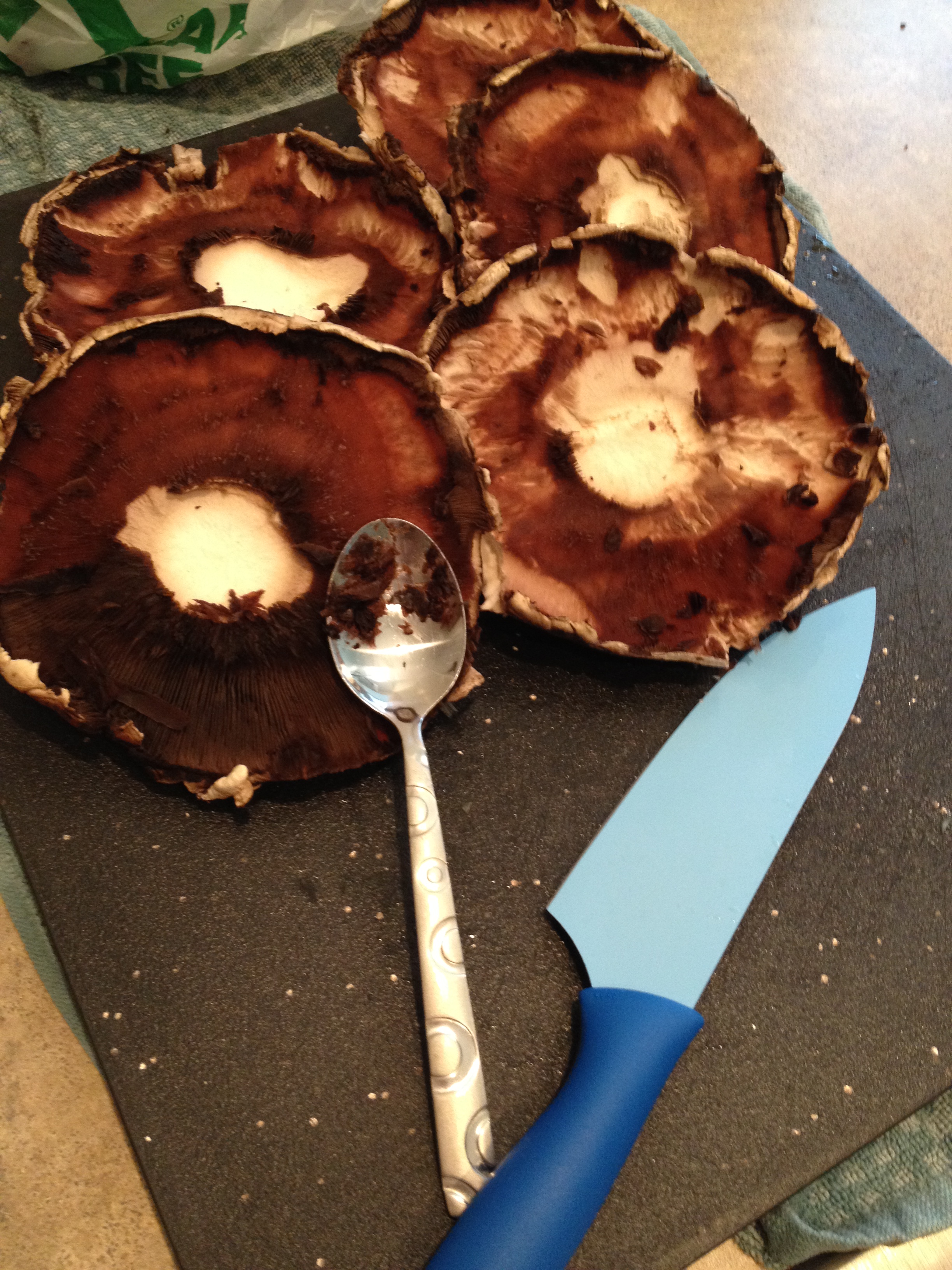 4. Clean mushrooms then use a spoon to scrape out ribs of mushrooms. Slice mushrooms very thin.