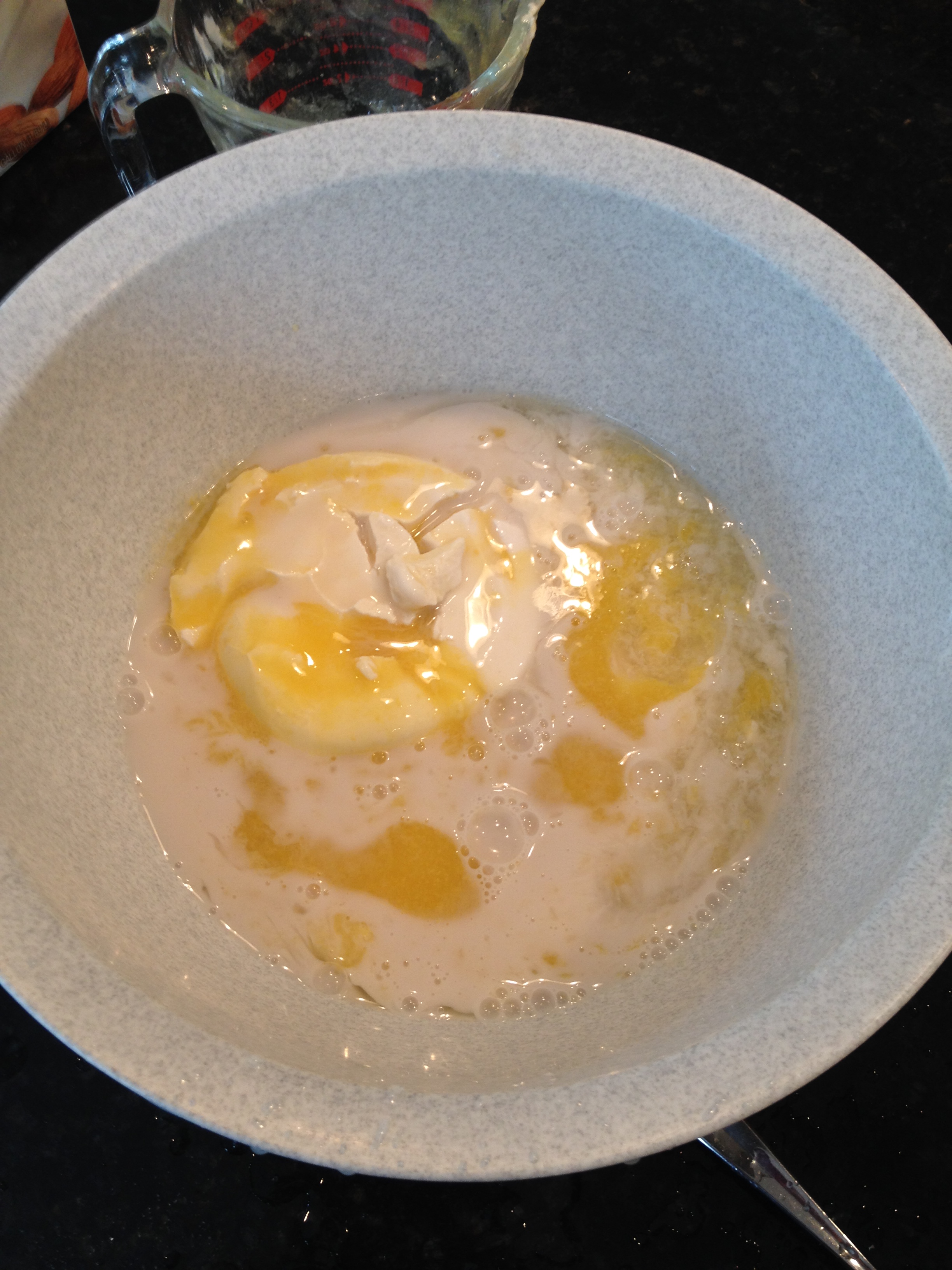 2. Dump cream cheese, milk, Vegg and lemon juice in a large mixing bowl and mix carefully so it doesn’t splatter.