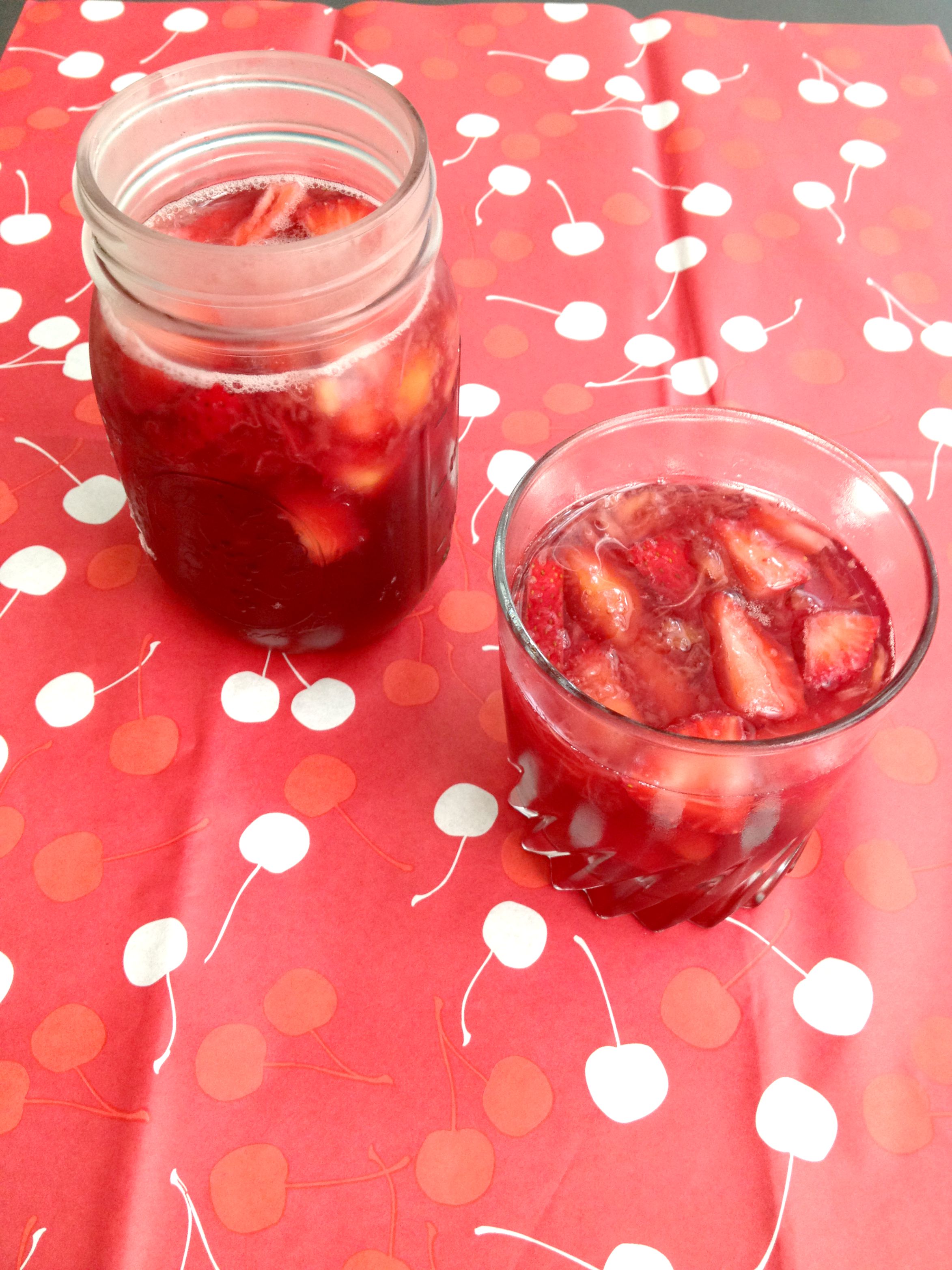 Non-Alcoholic Sangria4. Wash and slice strawberries thinly then dump in the pitcher.
