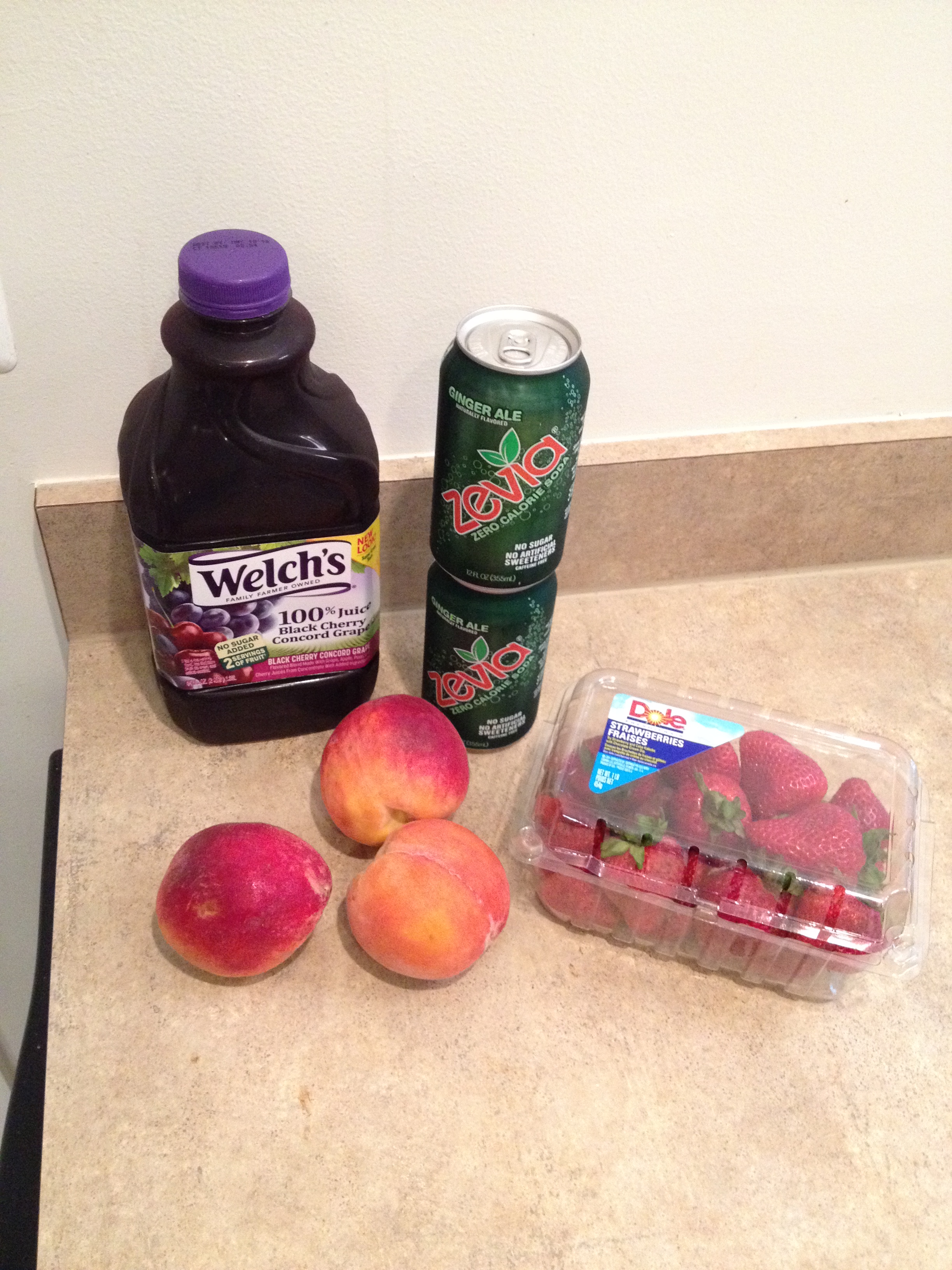 With peaches at an all-time cheap (.49 cents a pound!!) I loaded up on peaches. In the bunch, I made sure to choose three peaches that were just starting to get soft. Wash then quarter the peaches, then peel them. Slice them thinly then dump them in a pitcher. Don’t throw the peels away – eat them! Once peaches are in the pitcher, pour in the juice; mash the peaches a little to break them up, then set pitcher in the fridge for a few hours. Once ready to drink, wash and slice the strawberries and dump in the pitcher then pour in the ginger ale; mix gently. Pour into cups and enjoy! This turned out tangy and sour, and was so good.