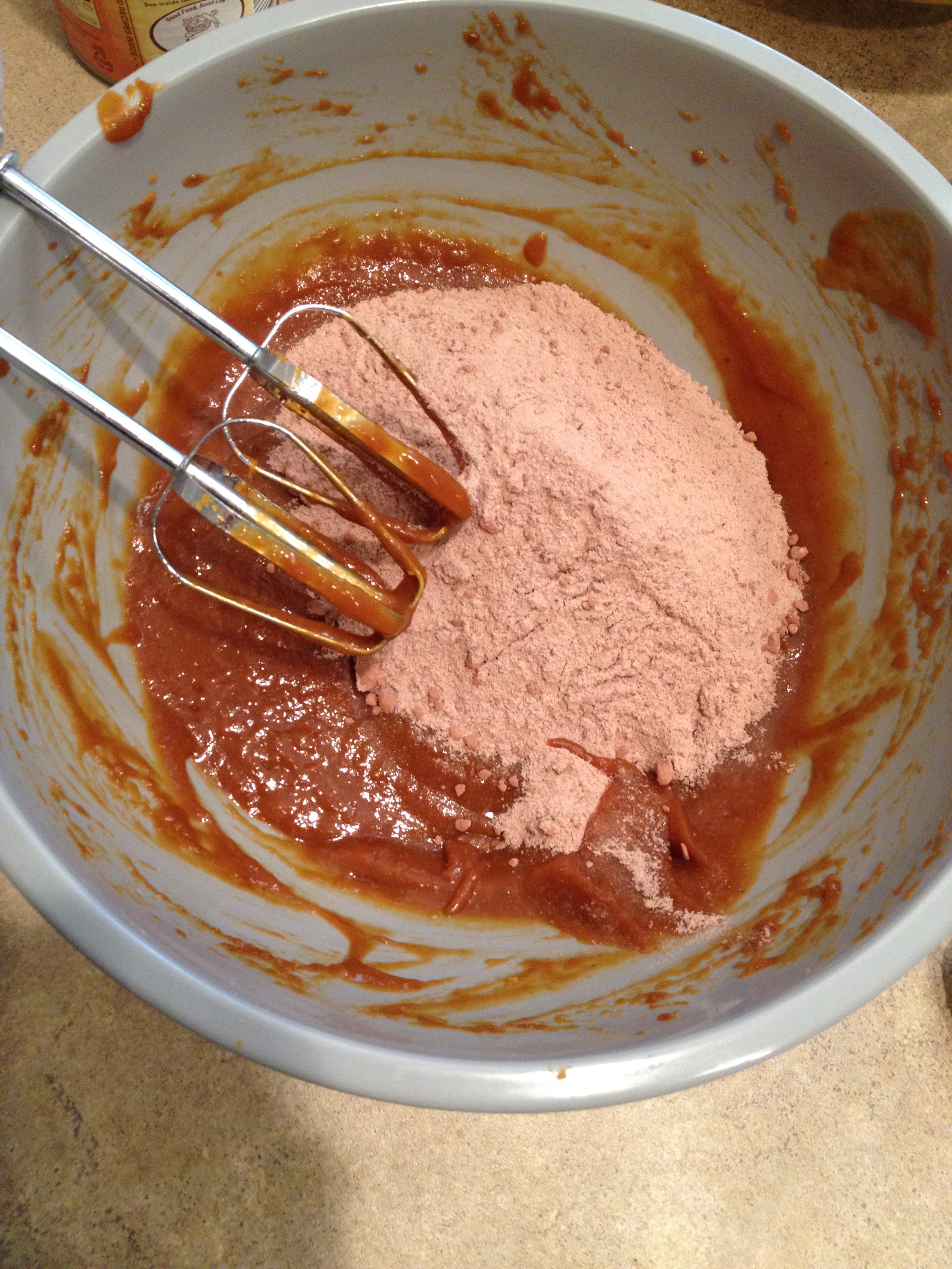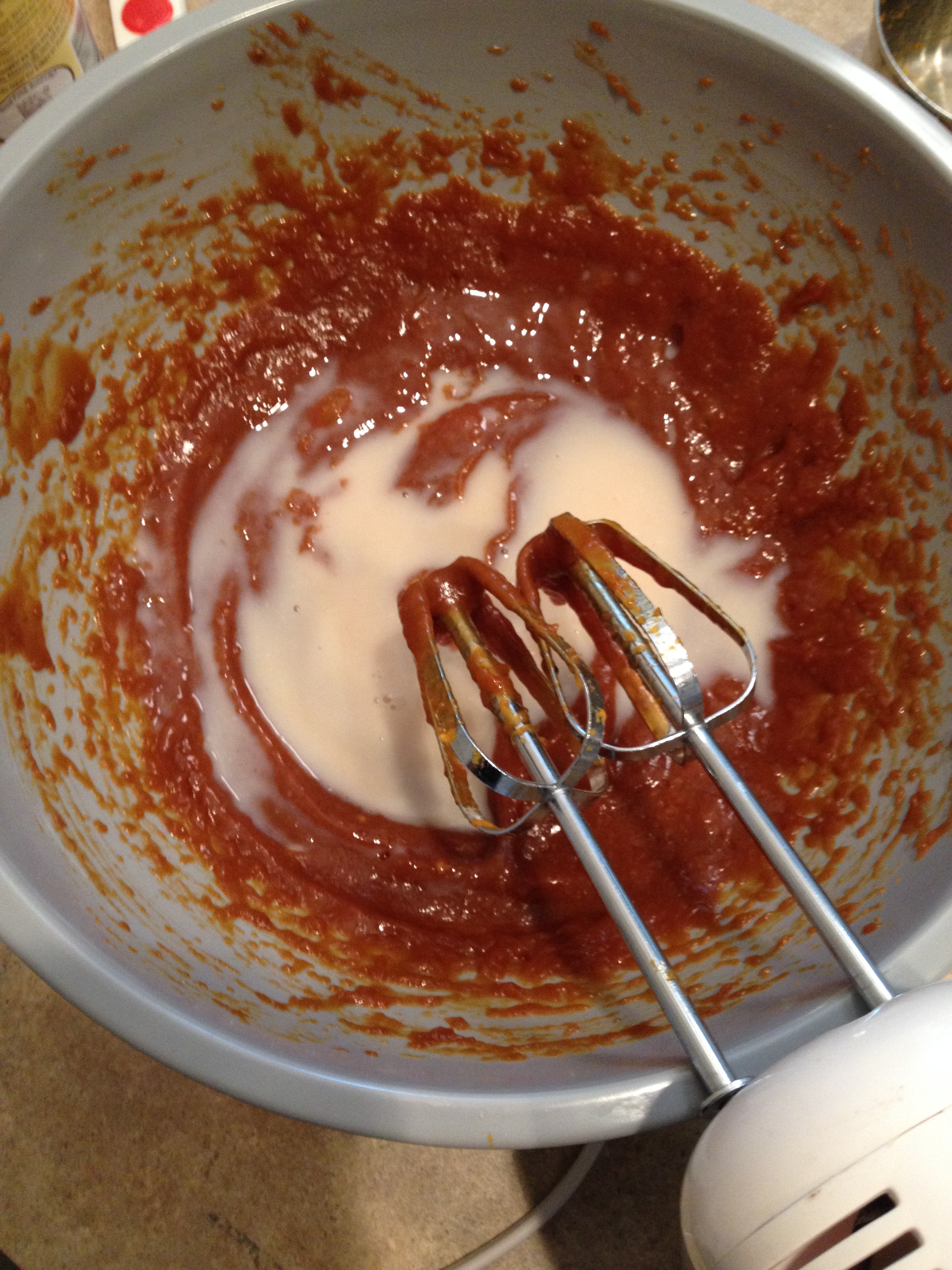 3. In a large bowl using a hand-mixer mix pumpkin and coconut sugar.