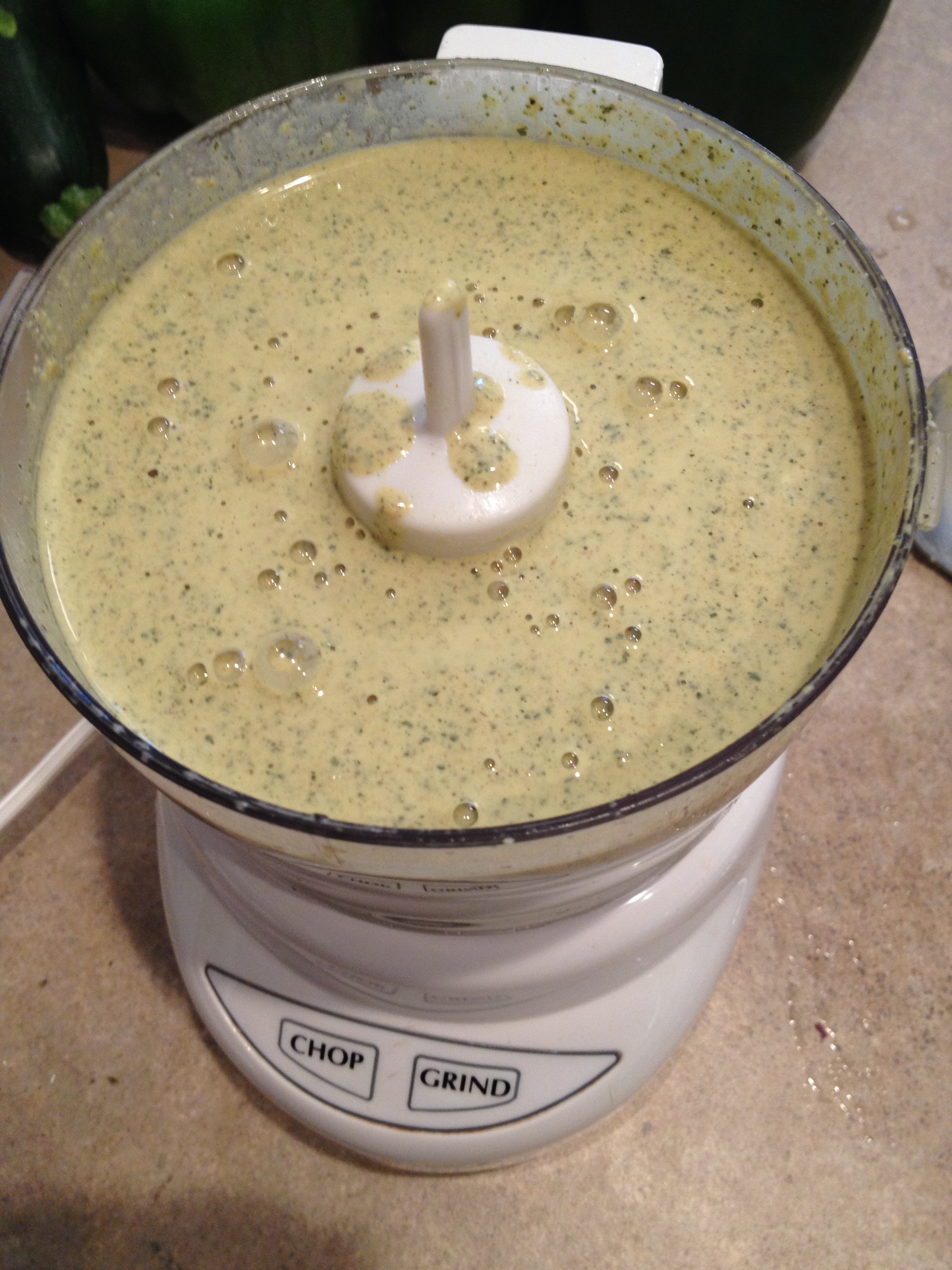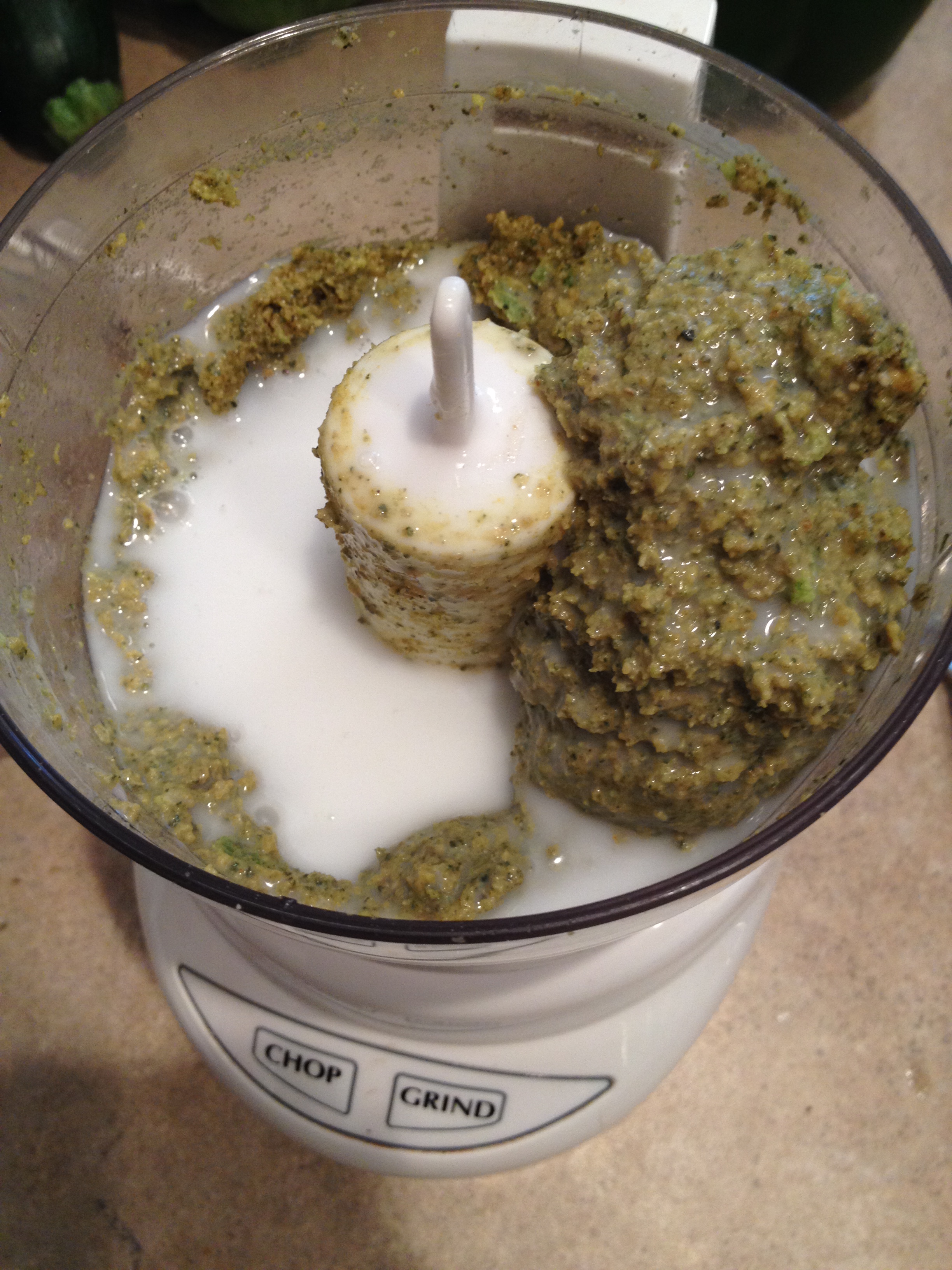 4. Add in milk 1/4 cup at a time and process until creamy and loose. Set aside.