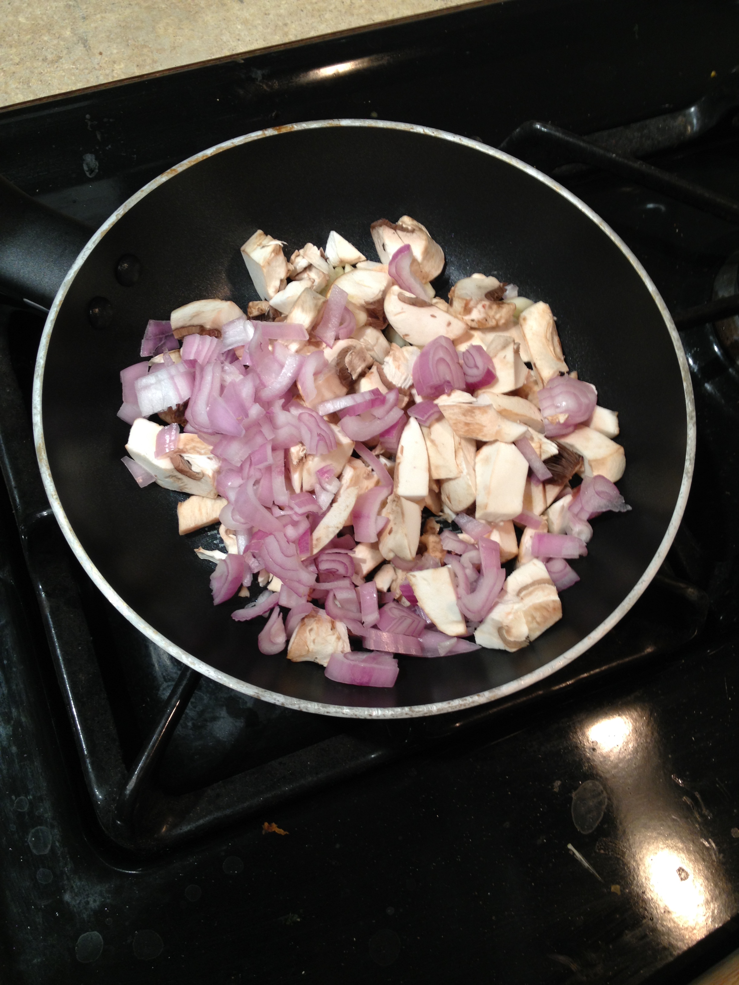 2. Chop shallot, garlic, and mushrooms then saute with a little olive oil and the pepper until browned.