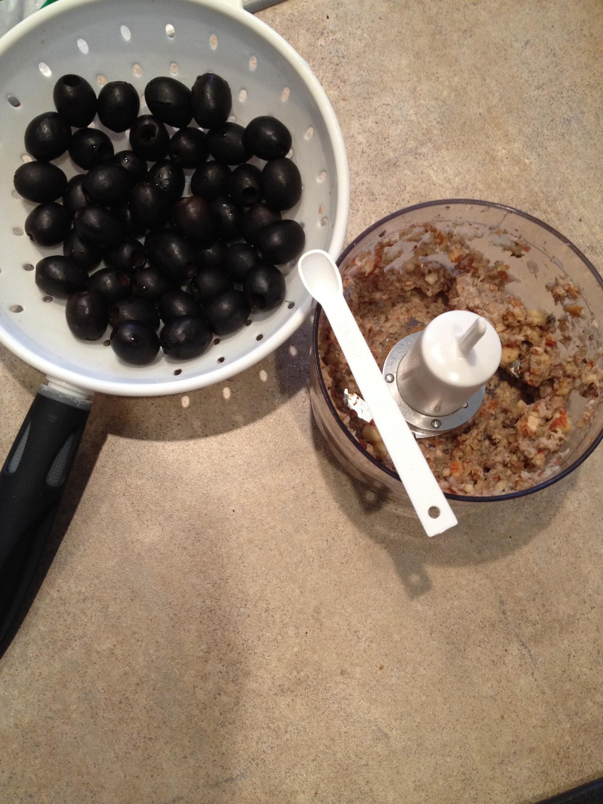 But back to the olives and stuffing. Since the only things I have ever stuffed before were zucchini’s I wanted to make a different type of stuffing. I had to use my fave veg – the mushroom. I was thinking about stuffed mushrooms and how I’ve always been too intimidated to make them … silly, since I was fine stuffing an olive. But since I haven’t done the mushroom yet I figured I would use that for the base. Add a small shallot, some garlic, and ground almonds? Oh. Yum. I thought plain ole olives were addicting? Try them stuffed with savory stuffing! They are even better after stuffing and then letting them sit in the fridge to get the flavors all melded together – they taste amazing the next day. They are the perfect appetizer since you can make everything ahead of time and stash in the fridge. Easiest appetizer to put together. Drain and rinse olives then set aside to dry. Roughly chop the mushrooms, shallot, and garlic and saute with a little olive oil and black pepper until softened and browned. Grind up the almonds then add the sauteed veggies and process until smoothish. Use a 1/2 teaspoon to gently press stuffing into olives. Done and enjoy!
