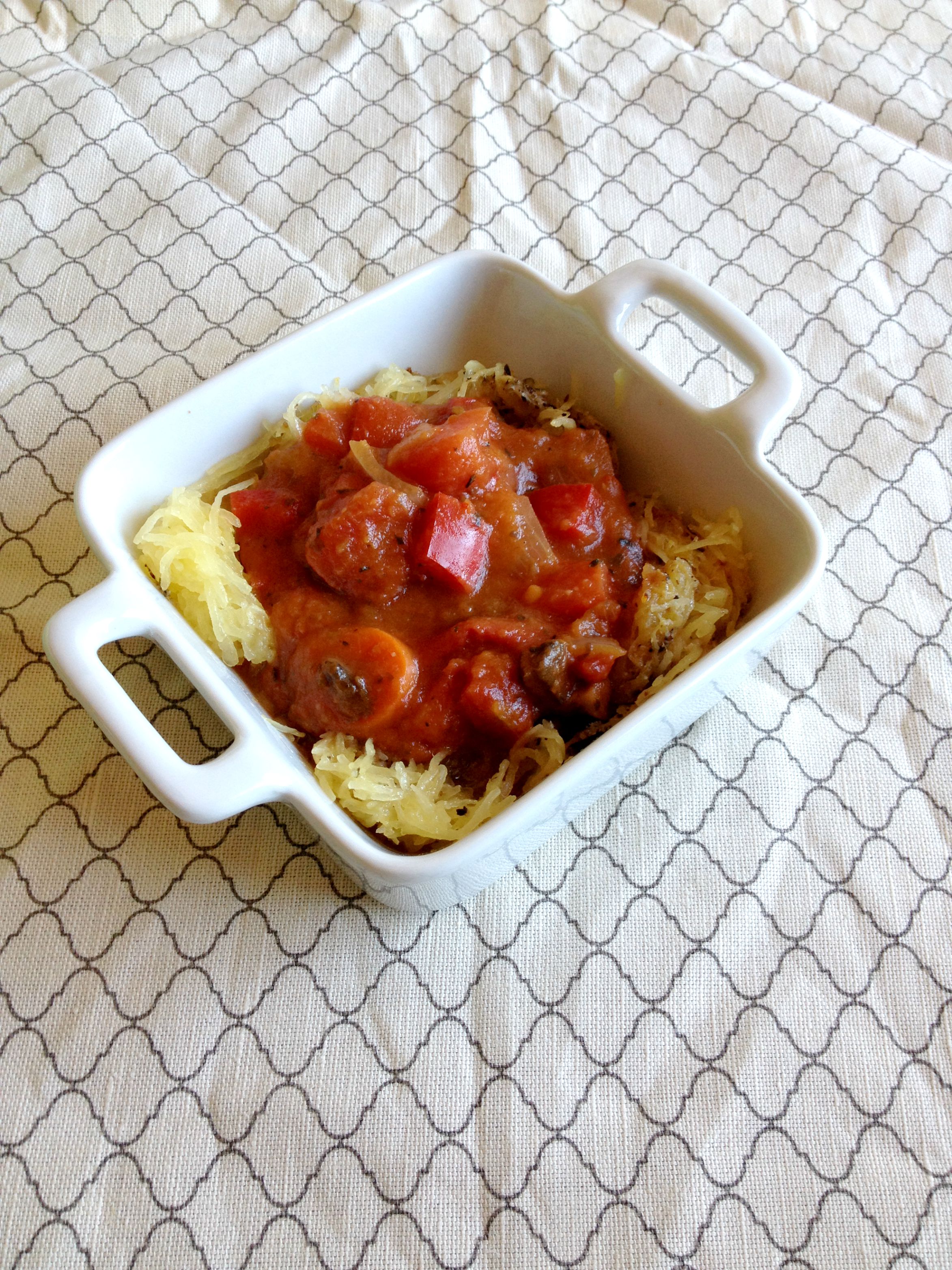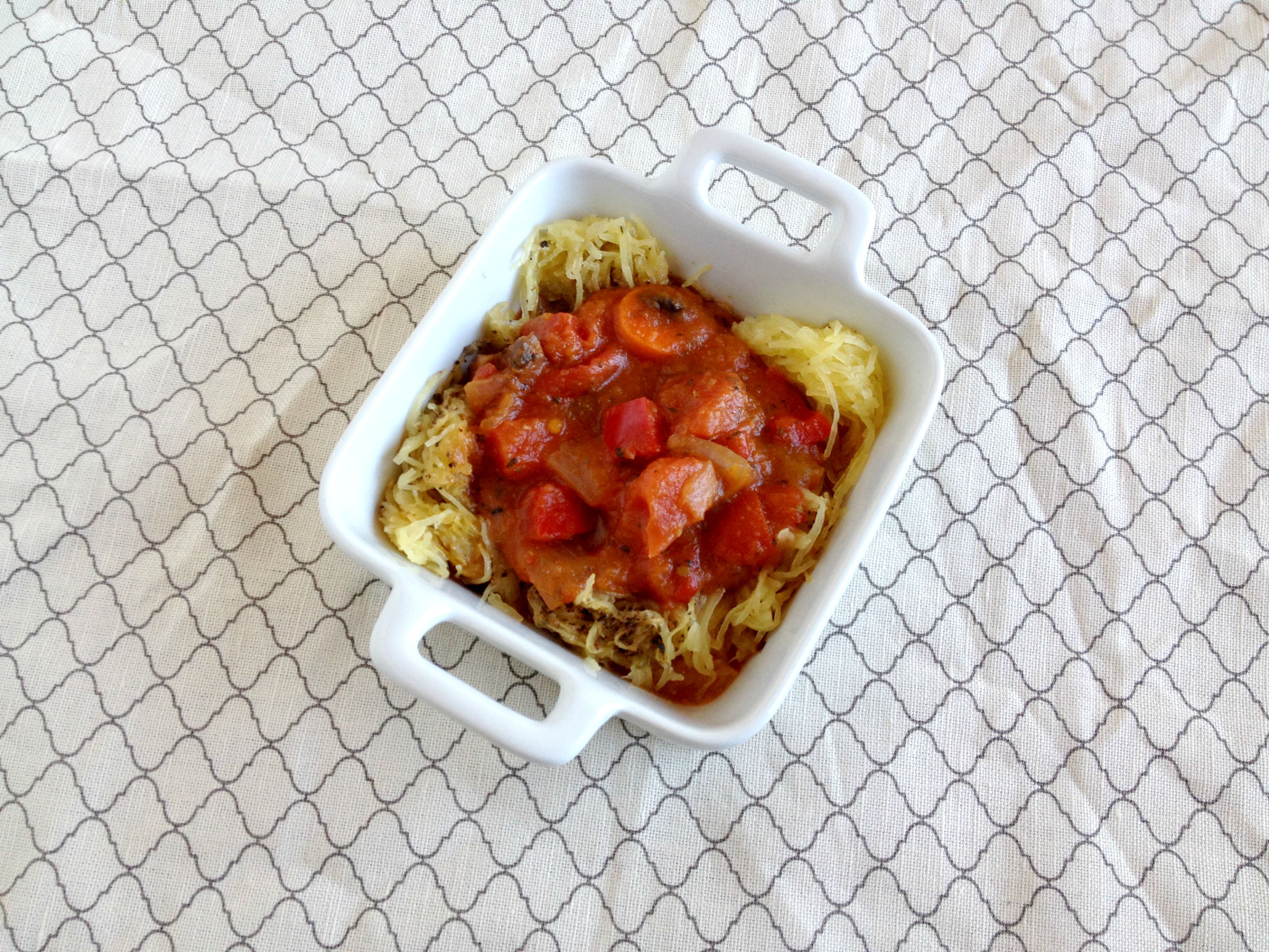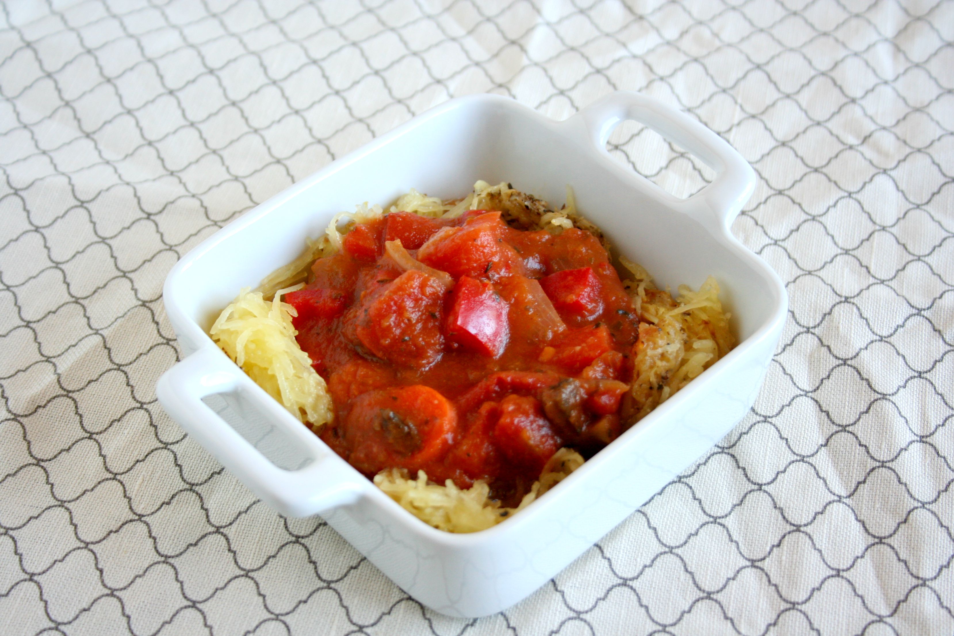 10. Shred spaghetti squash and spoon veg sauce over.