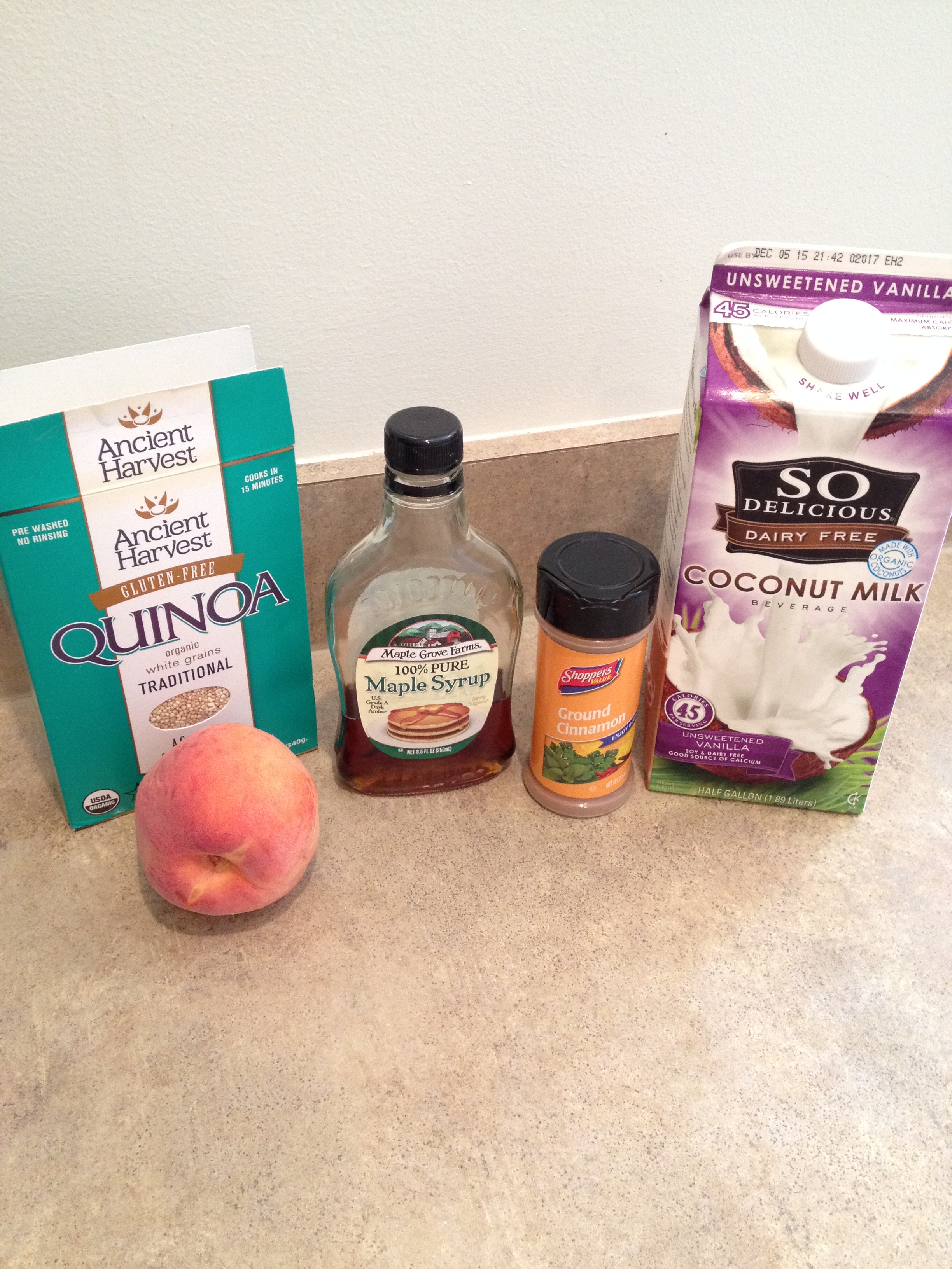 Start by making your quinoa – looking on the box or Googling how much dry and water to make healthy portions for the week. Once quinoa is done, let it cool then either portion into individual containers, or just portion out one and put the rest in a larger container. Add in the milk, peach, cinnamon, and maple syrup and mix then let sit in fridge overnight. When ready for breakfast microwave about two minutes then add a little water to loosen up, then let sit with lid on to meld everything together. The peach will be really soft, like a baked peach (yum!). Enjoy!