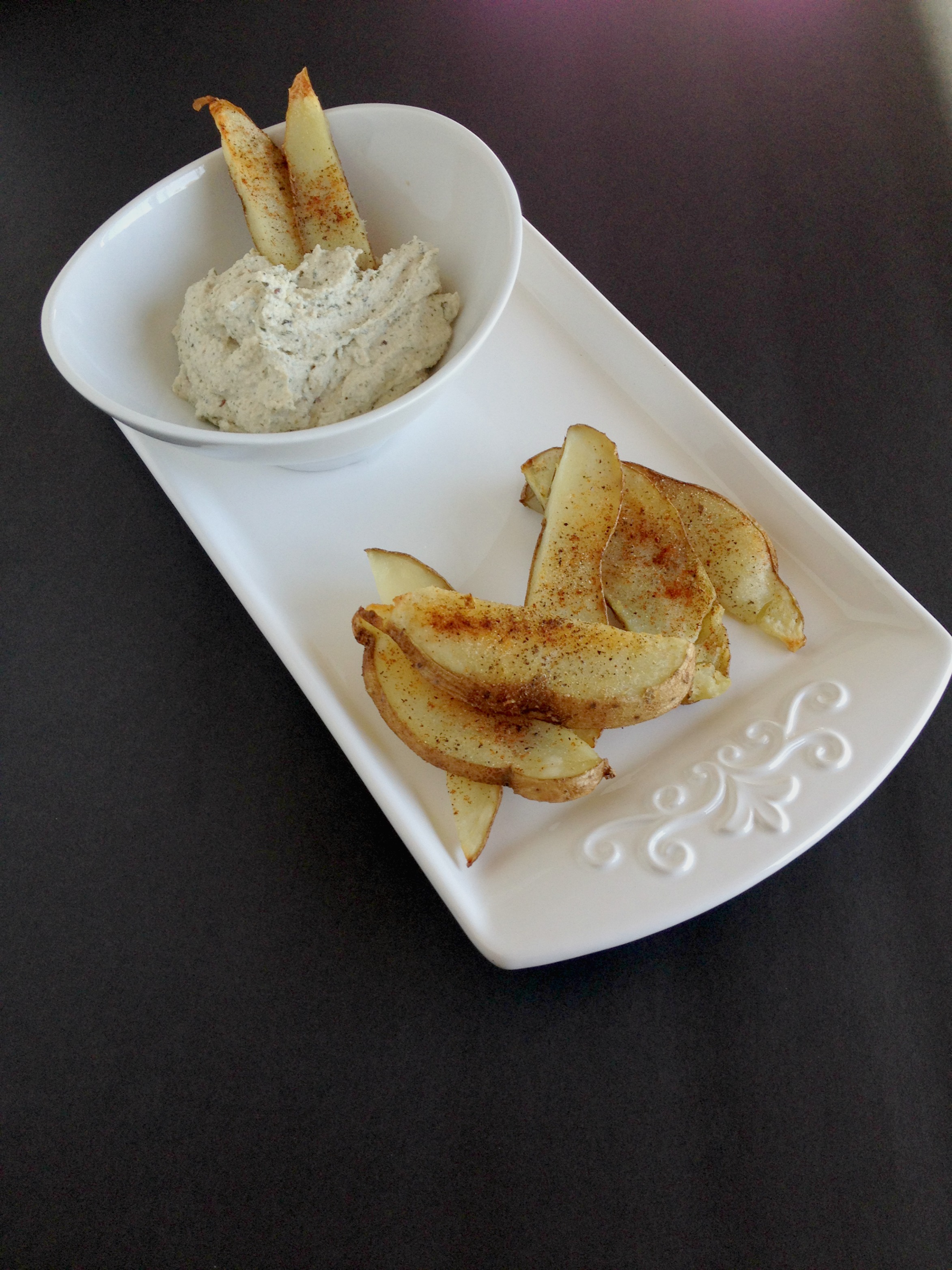 Sometimes you just need some serious inspiration to break out of what is holding you back recipe-wise. Because there are certain recipes that intimidate me and some that I don’t want to try again because I failed big time. Like my very first post on here? Veggie burgers and pita bread? I so need to make them again because I know I can do better and I see recipes with amazing burgers that I want to try. You know what? Still haven’t tried it yet, and this is not a burger post. Nope – this is another intimidating recipe I am tackling today. Nut cheese! This recipe is everything I love wrapped up into a surprisingly simple package! Vegan and gluten-free Cashew Ranch Cream Cheese Dip and Crispier Potatoes.