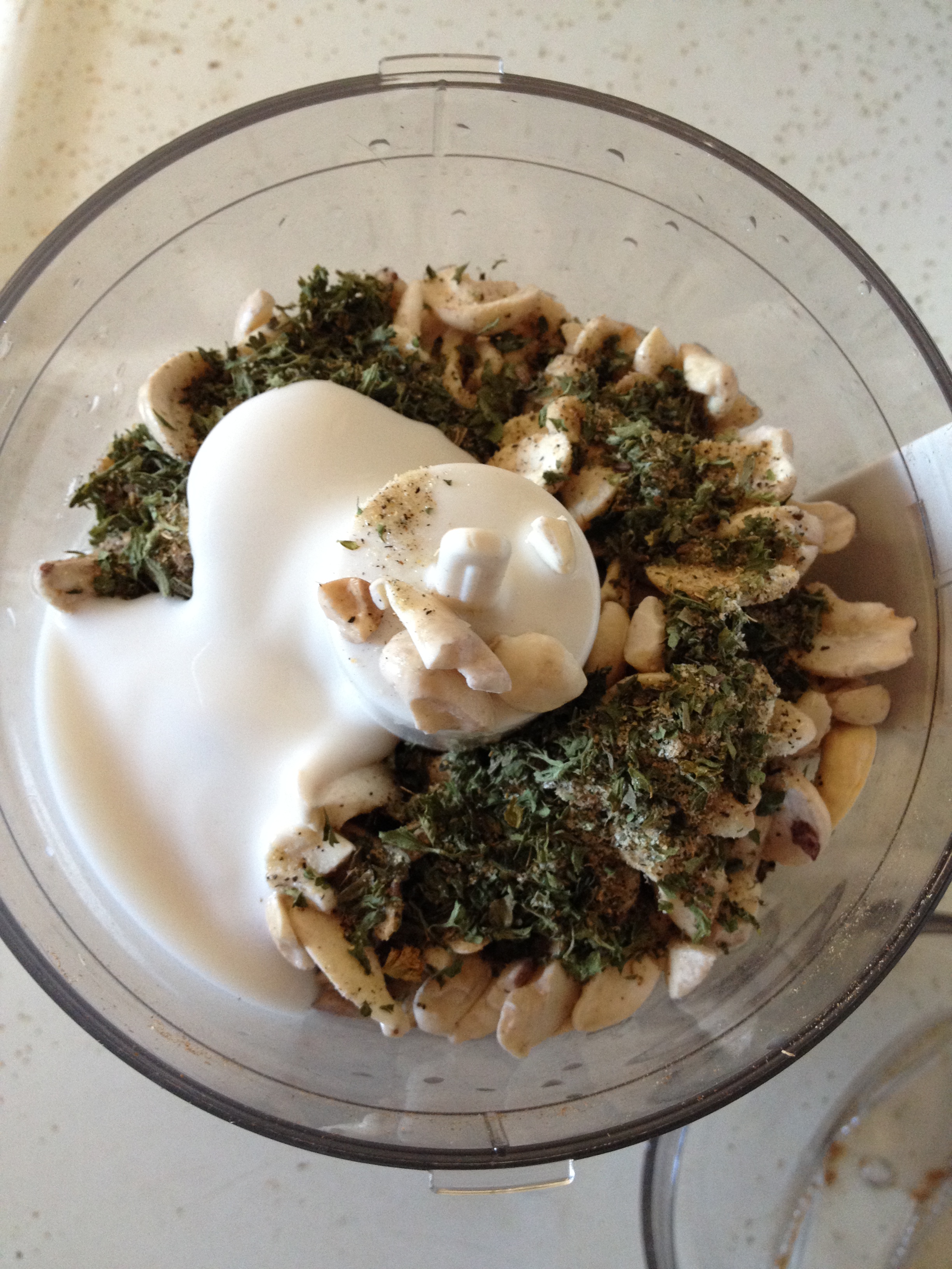 2. Drain cashews then dump in a small food processor and add all other ingredients.