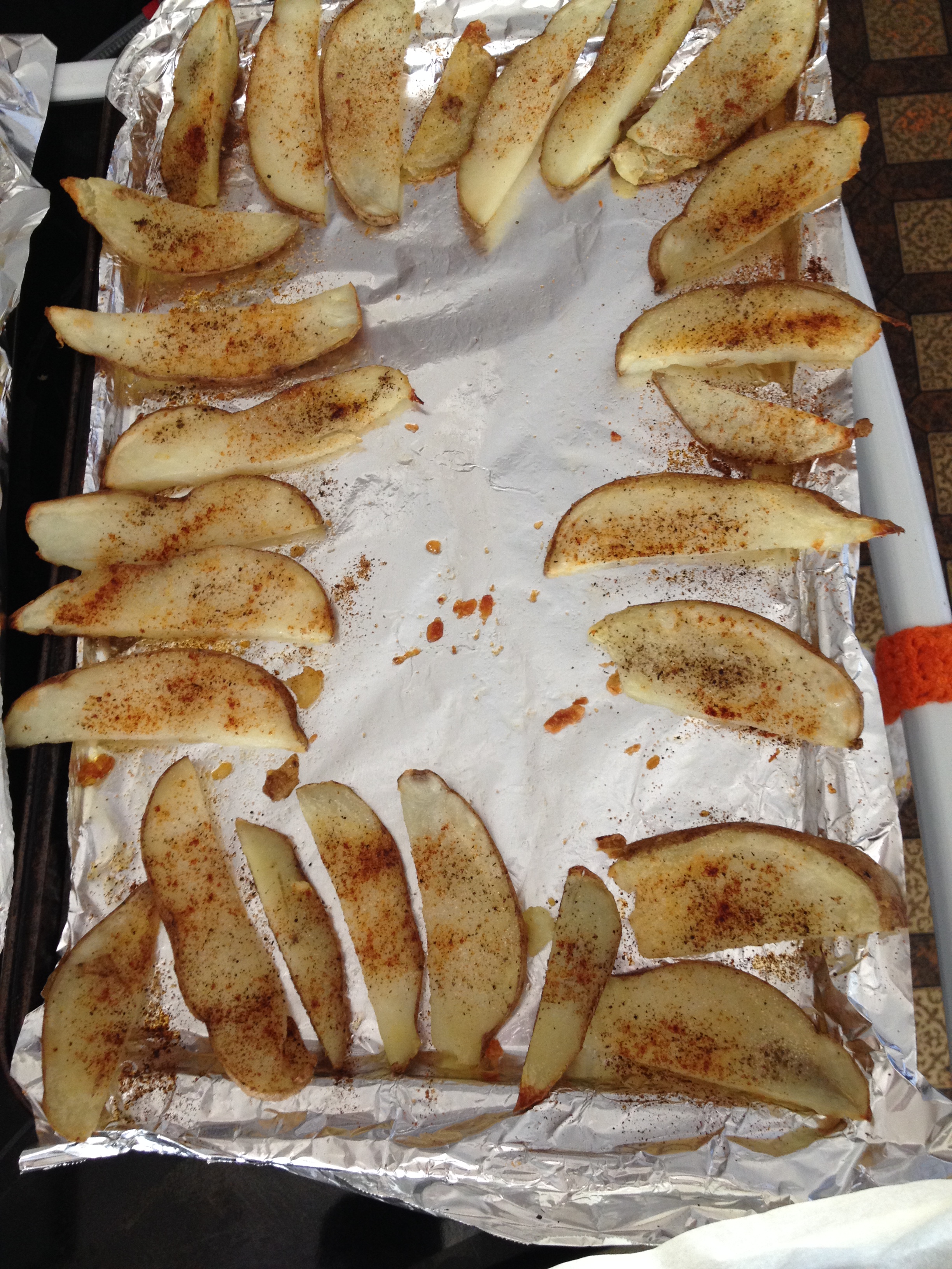 5. In small portions, sprinkle spices onto potatoes.