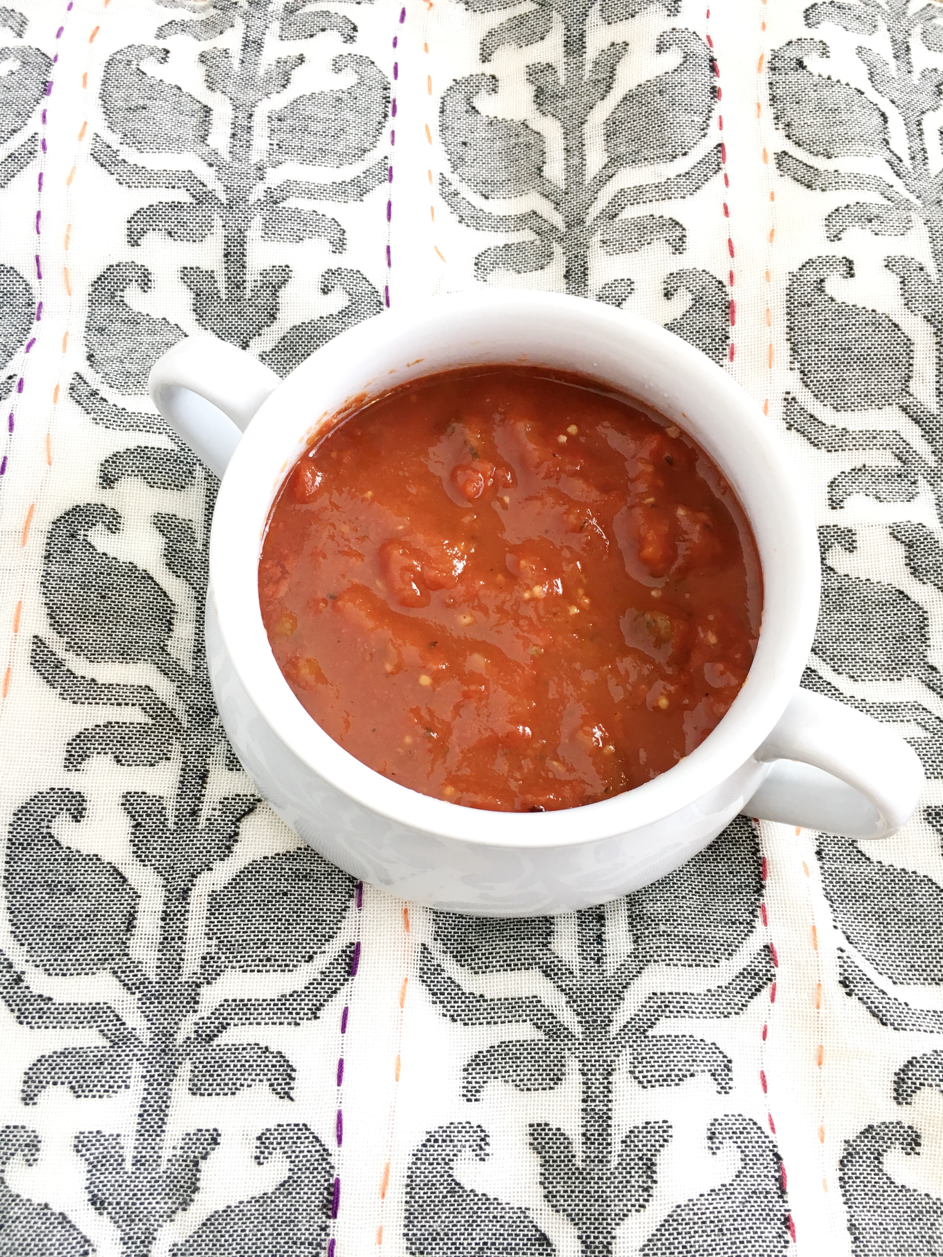 Sometimes your on a diet (sometimes?) and you want comfort food. That comfort food doesn’t necessarily mean fattening or sugary, it means the ease of popping a can and dumping in a bowl and microwaving. Soup – tomato soup. Here is my easy vegan and gluten-free No Blend Tomato Soup.