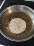 5. Once veggies are done, dump into a bowl and place the pitas flat on the pan to brown.